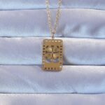 316L Altın Renk İşlemeli Yonca Model Vintage Kolye