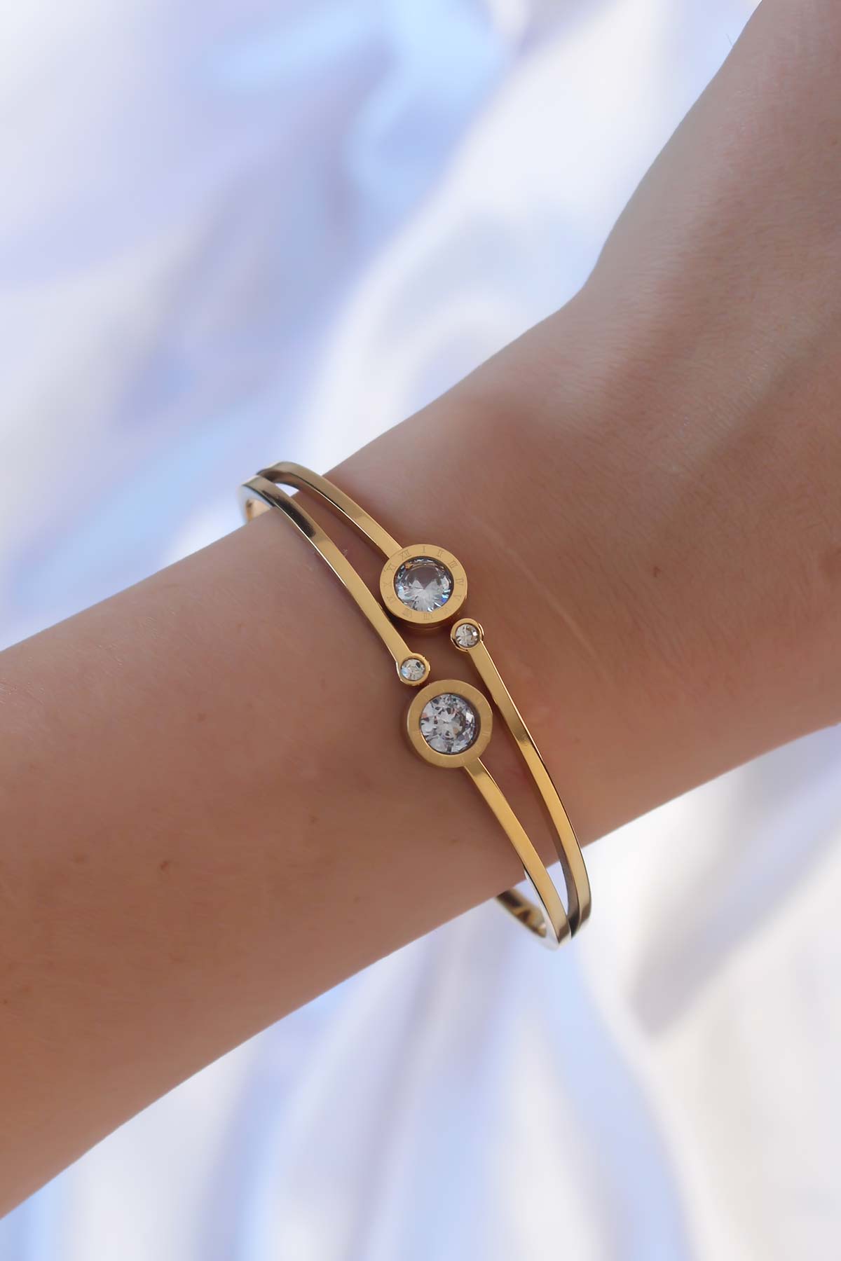 316L Çelik Altın Renk Zirkon Taşlı Model Kelepçe