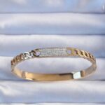 316L Çelik Altın Renk Zirkon Taşlı Zincir Desenli Kelepçe