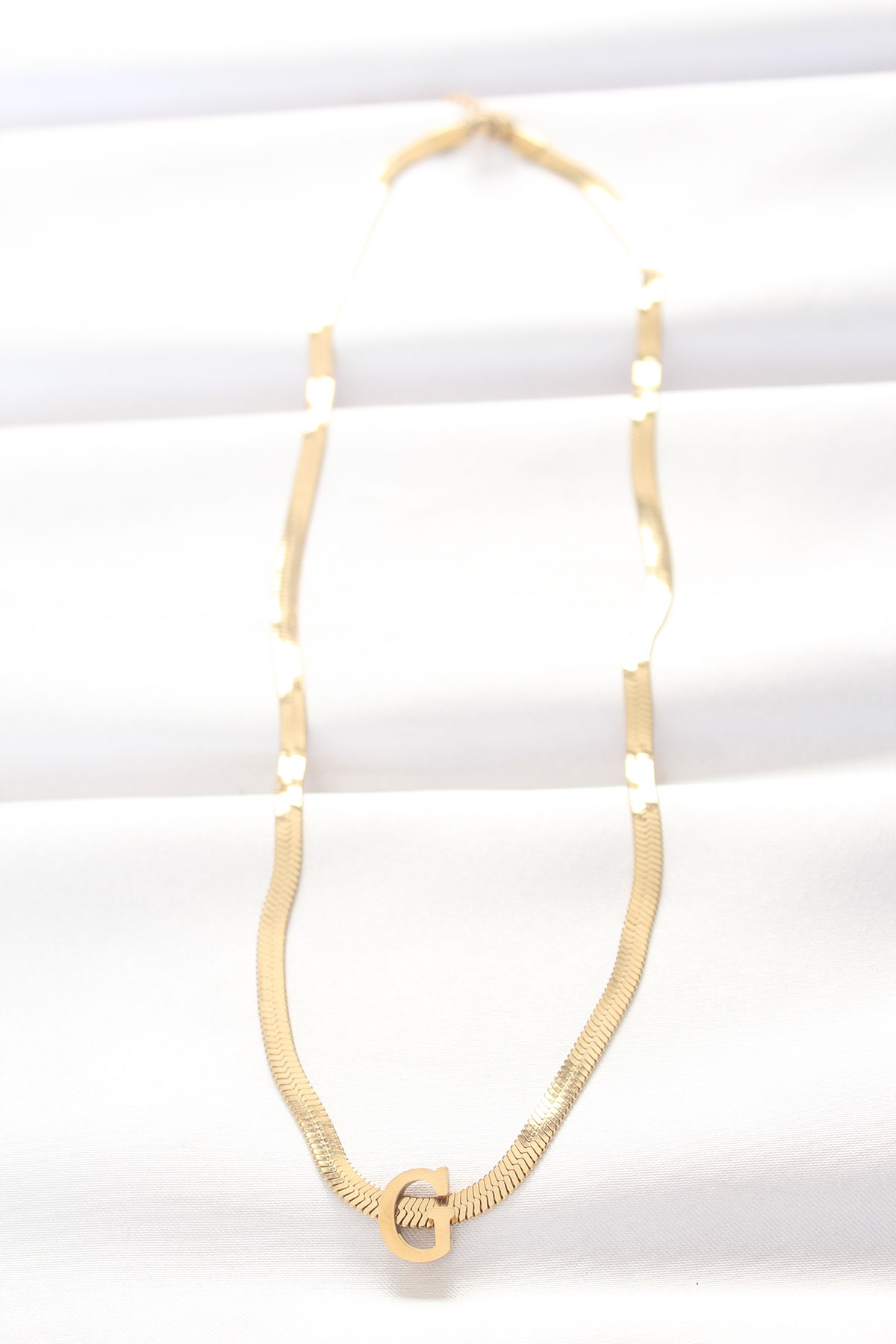 316L Çelik G Harfli Gold Renk İtalyan Zincirli Kolye