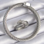 316L Çelik Gümüş Renk Sarmal Model Erkek Bileklik Yüzük Kombini