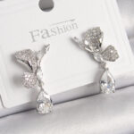 Pirinç Gümüş Renk Zirkon Taşlı Turna Kuşu Model Sallantı Detay Kadın Küpe