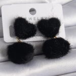 Siyah Tüylü Ponpon Model Kadın Küpe