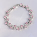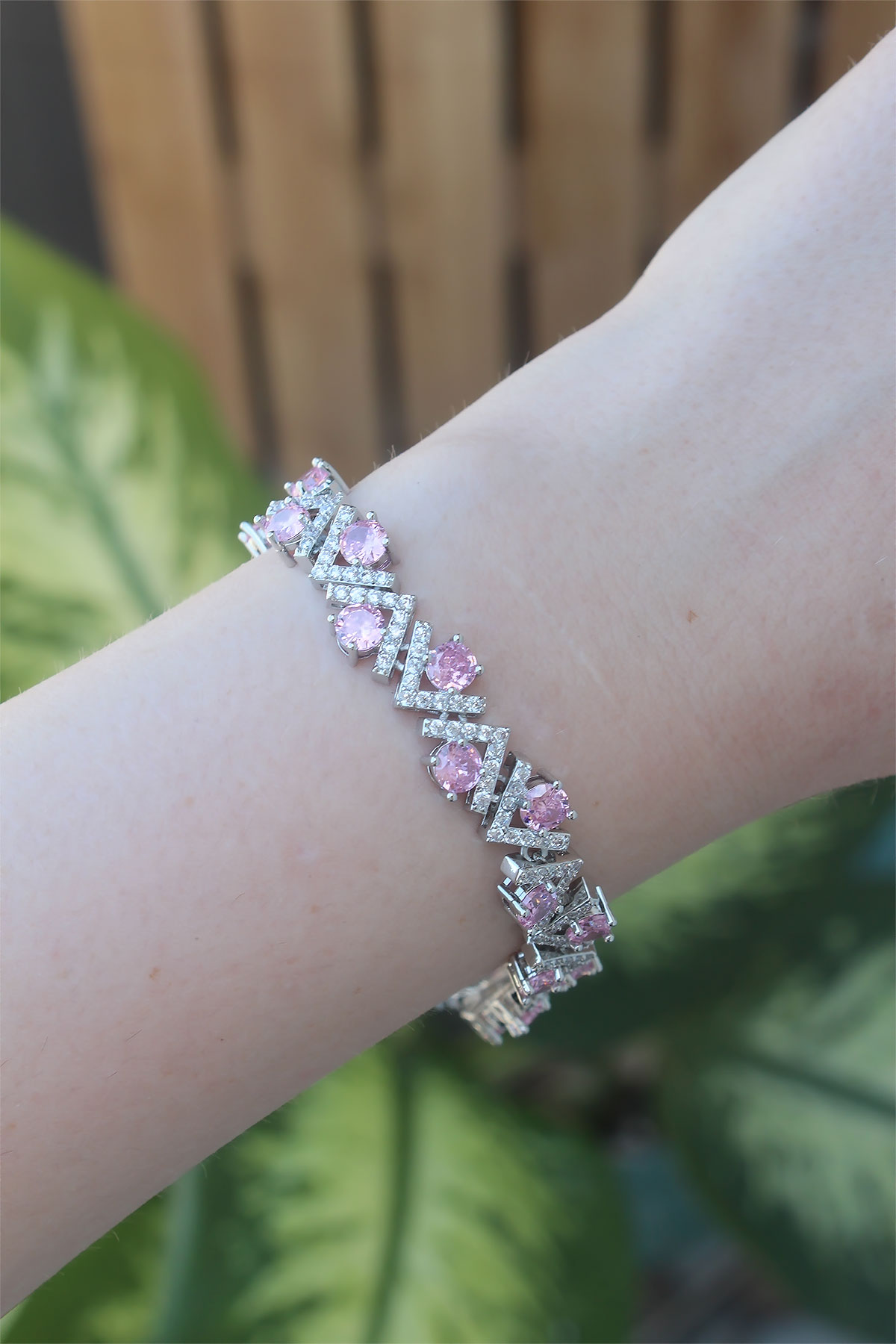 Vip Seri Pirinç Pembe Zirkon Taşlı Gümüş Renk V Model Bileklik