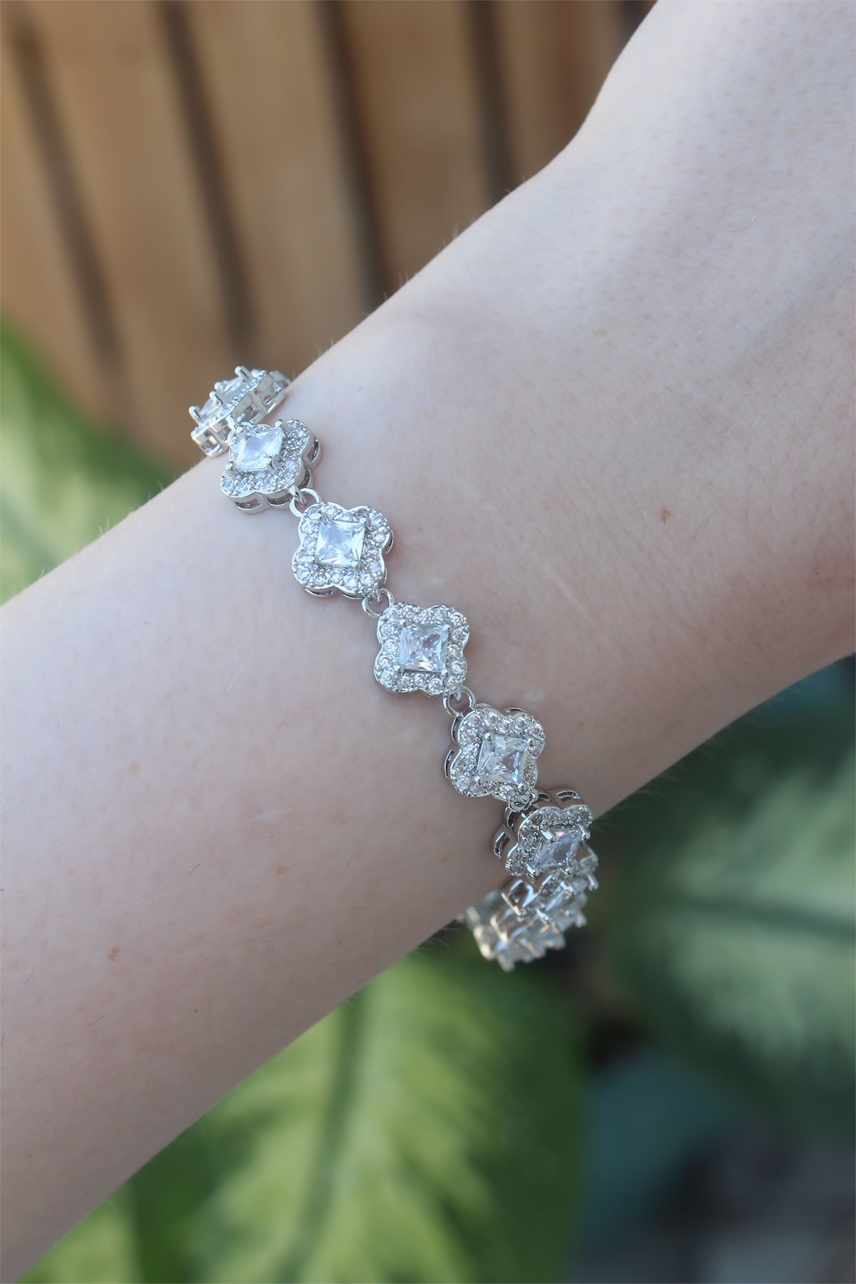 Vip Seri Pirinç Zirkon Taşlı Gümüş Renk Yonca Model Bileklik